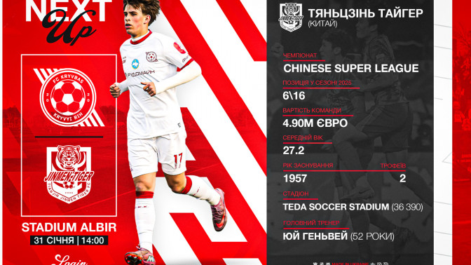 "Kryvbas" - "Tianjin Tiger": 31st day at 14:00